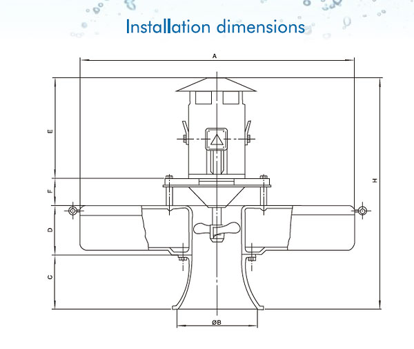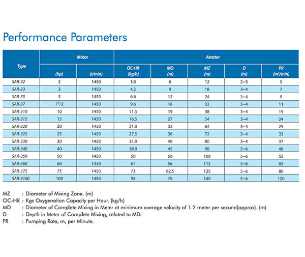 SAR series Surface Aerator Uses Motor to the drive axial flow type impeller directly inorder to pump waste water for creating the spray pattern (or water drop) through the water guide panel.